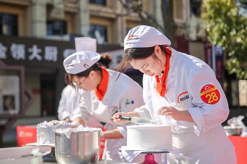 在比賽中,同學(xué)們專心致志,使出渾身解數(shù),用作品證明自己的實(shí)力,同時(shí)也是為自己所學(xué)的西點(diǎn)技能交上了一份答卷。