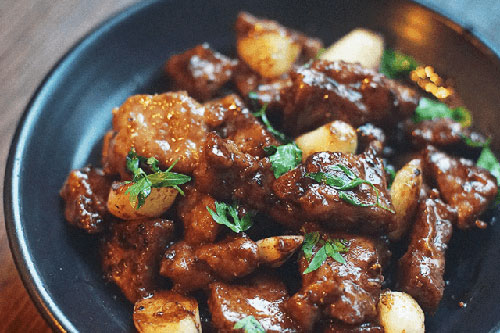 4、大火把牛柳粒滑炒一下,表面均勻變色了就撈出備用。