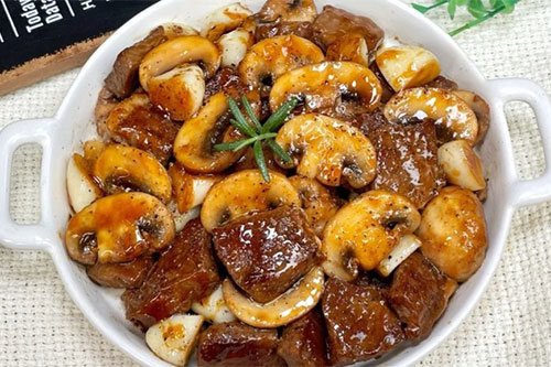 制作食材:牛肉、口菇、大蒜、黃油、黑胡椒粉