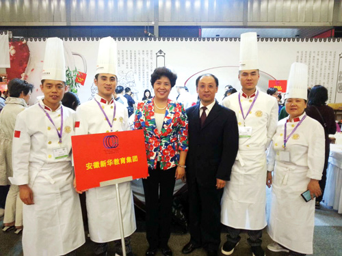 世界中餐業(yè)聯(lián)合會會長楊柳女士與新東方烹飪教育大師合影留念