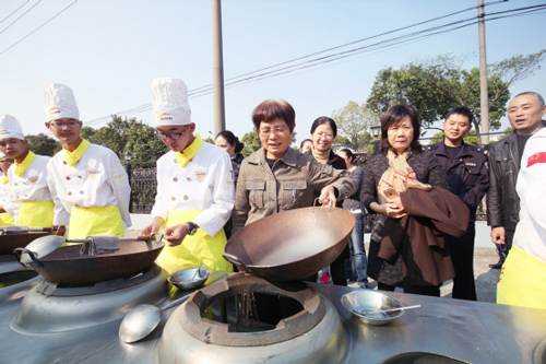 婦聯(lián)工作人員參觀翻鍋練習(xí)