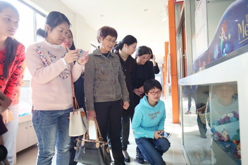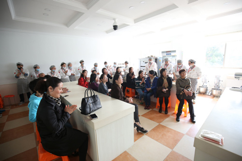 這次婦聯(lián)工作人員主要來體驗的是西點制作,在進入西點學(xué)校后他們就被一個個精美的展示蛋糕所吸引,紛紛拿出手機拍照留念。簡單的參觀過后婦聯(lián)工作人員來到了體驗課的教室準備大展拳腳了。